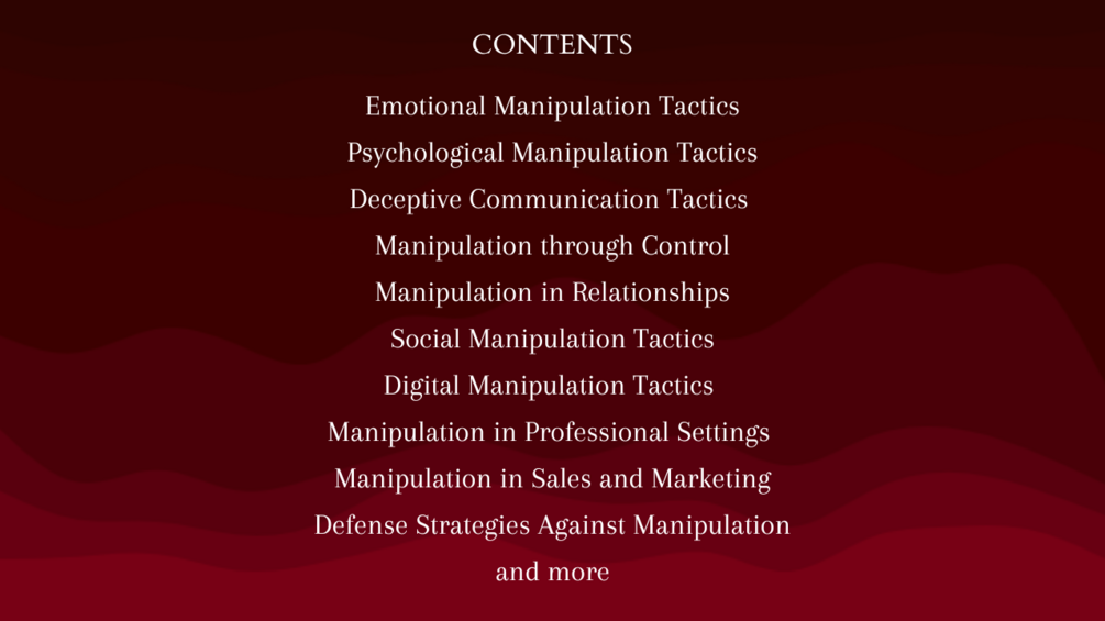 This eBook Will Help You Unravel the Secrets of Manipulation, Arm You with Strategies to Guard Against Manipulation, and Strengthen Your Resilience in Navigating Relationships. Embrace Your Journey to Empowerment and Genuine Development